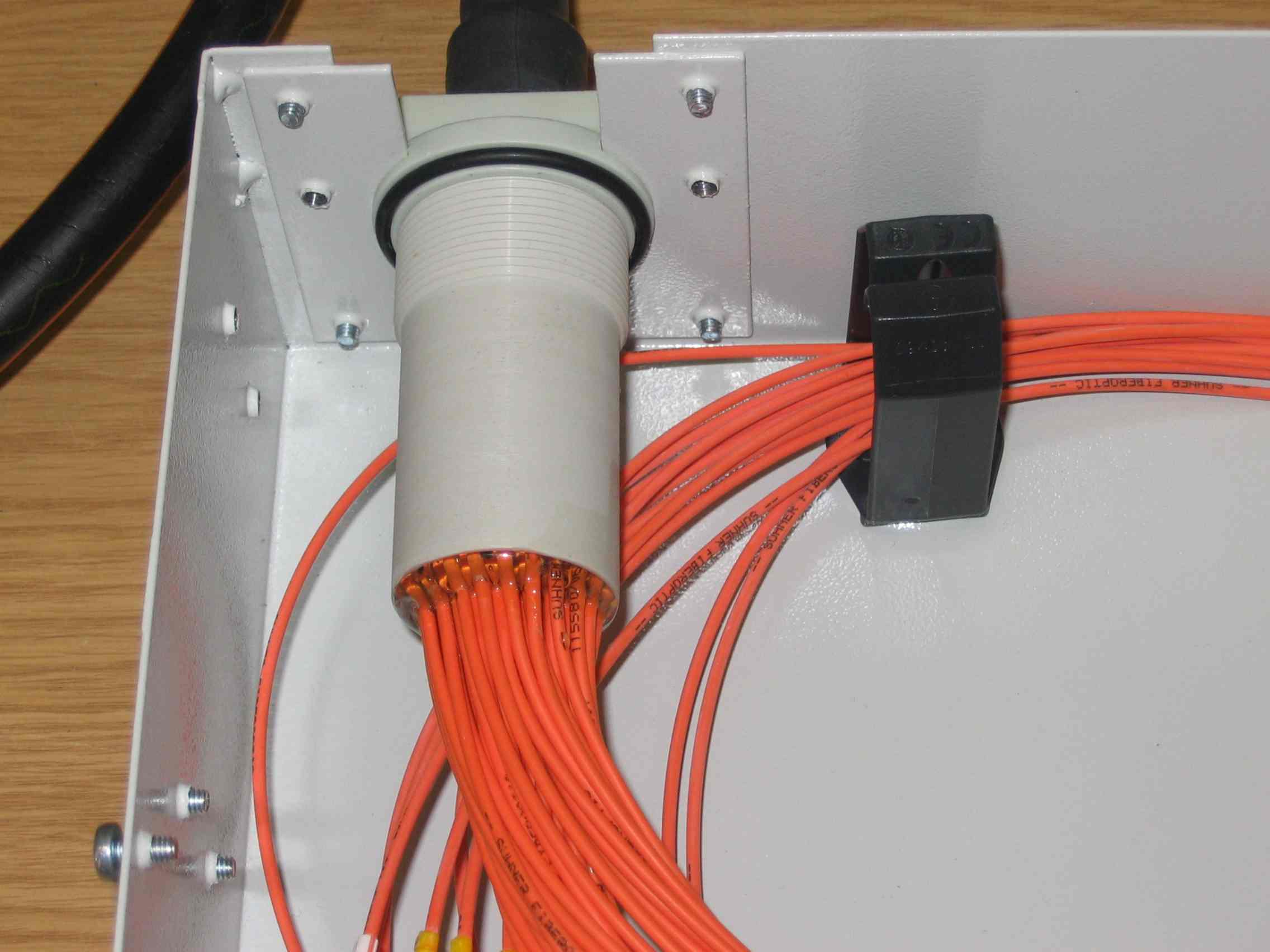 - В кабельный ввод устанавливаются сменные (на 12, 24 или 48 волокон) кабельные держатели.