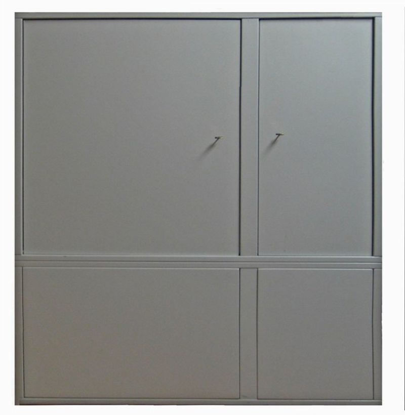 Двери. Двери двустворчатые, со скрытыми петлями. Снабжены замками трехточечного запирания, с запирающими ригелями.