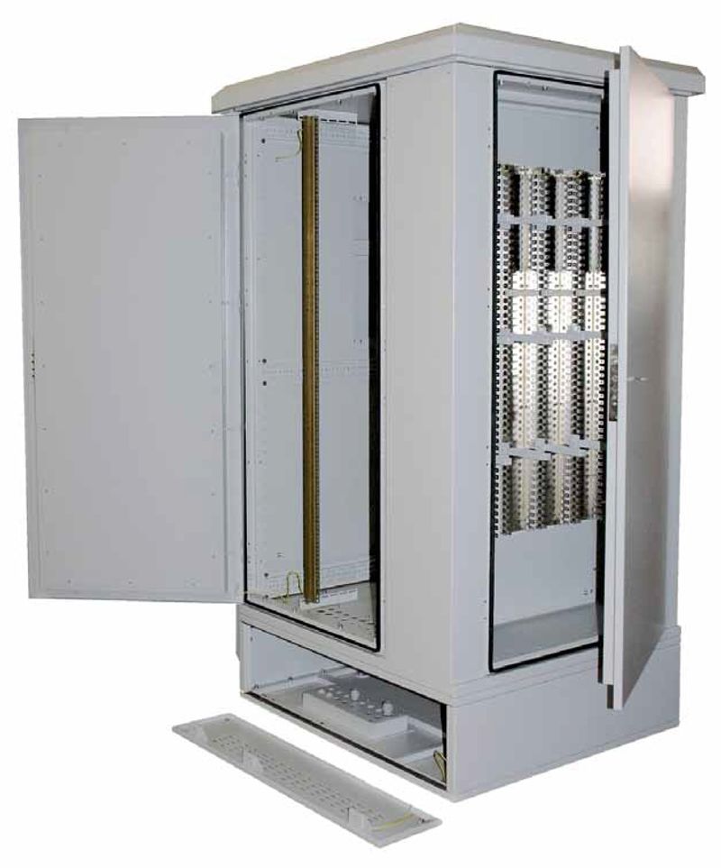 Шкаф-термобокс модульной конструкции, имеет телекоммуникационный и кроссовый отсеки.