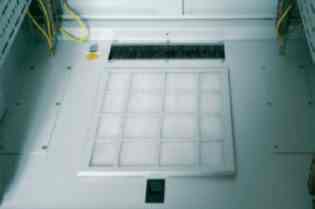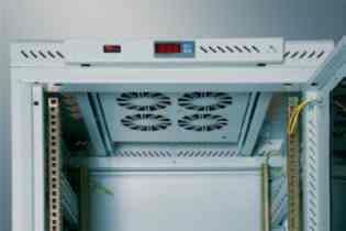 Вентиляция и контроль климата. Перфорация в основании и крышке шкафа обеспечивает вентиляцию внутреннего объема шкафа. Поддержание необходимого температурного режима внутри шкафа обеспечивается 4-х вентиляторным блоком с электронным терморегулятором. Вентиляторный блок устанавливается в верхнюю крышку шкафа на выдвигающихся полозьях, регулятор температуры вынесен на торцевую поверхность блока. Это обеспечивает свободный доступ при обслуживании и позволяет более эффективно использовать рабочий объем шкафа.