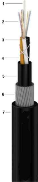 - 4. Пластиковая трубка с гидрофобным заполнителем и свободно уложенными оптическими волокнами.