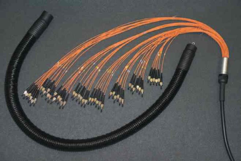 - Оптические волокна в защитных трубках диаметром 2 мм. располагаются внутри защитного шланга и оконцованы коннекторами