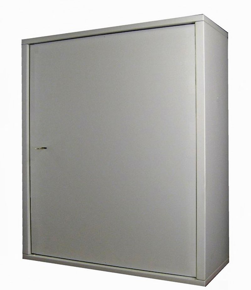 Конструкция. Все узлы выполнены из стали толщиной 2 мм, с дополнительными ребрами жесткости (усилителями). Шкафы крепятся на стене на 4 точках, анкерными болтами через отверстия диаметром 12мм. Шкаф состоит из корпуса и съемной кроссовой панели.