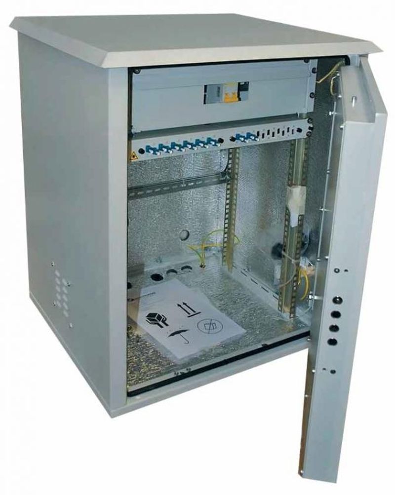 Конструкция шкафа-термобокса. Шкаф выполнен в антивандальном исполнении, с возможностью разбора только изнутри. Шкаф состоит из неразборного корпуса, основания, верхней крыши с отливами, и передней двери. Все узлы выполнены из стали толщиной 2 мм, с дополнительными ребрами жесткости. В шкафу предусмотрена установка систем обогрева и вентиляции и необходимых для управления тепловым режимом датчиков и термостатов. Для защиты аппаратуры от температурных колебаний внутренние поверхности отсека имеют термоизоляционный слой. Размещение аппаратуры внутри отсека на монтажных направляющих стандарта 19”.