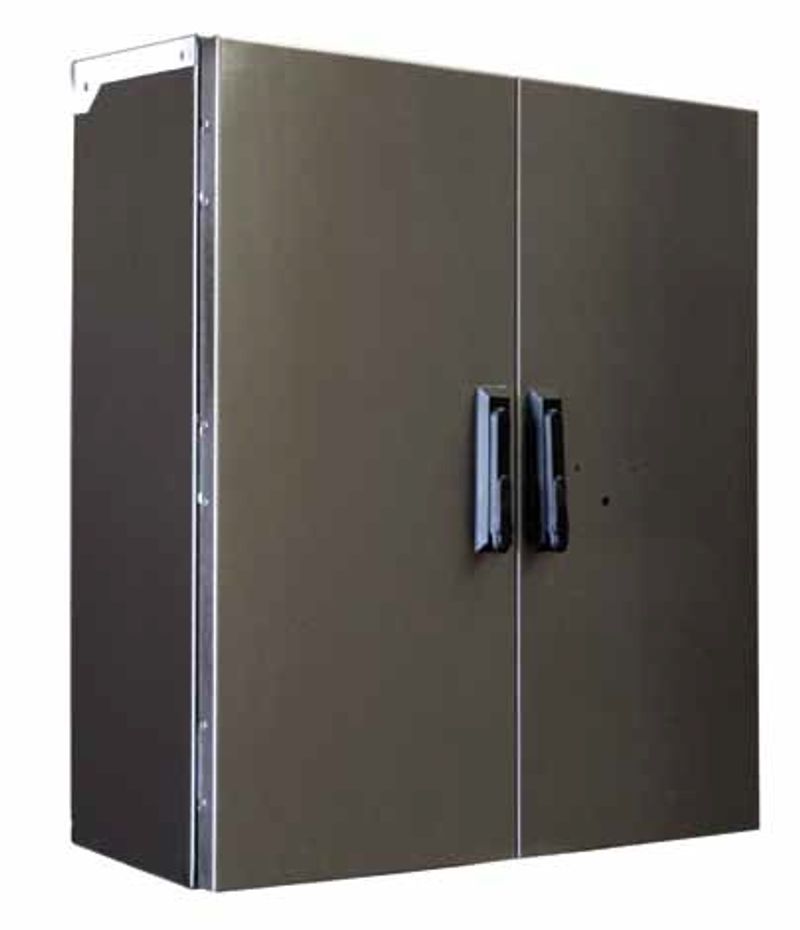 - Серия 671\06 - для защиты установленного оборудования от температурных колебаний внутренние поверхности корпуса и двери обклеены термоизоляционным материалом толщиной 10мм (“Алюфом” 3005AL). Внешние поверхности шкафа окрашены порошковой полиэфирной краской. Боковая стенка корпуса выполнена под установку двух вентиляторов; на монтажной панели предусмотрено установочное место под обогреватель. Для управления работой вентиляторов и обогревателя поставляются биметаллические терморегуляторы. Климатическое оборудование в базовую комплектацию не входят, поставка оговаривается при размещении заказа.