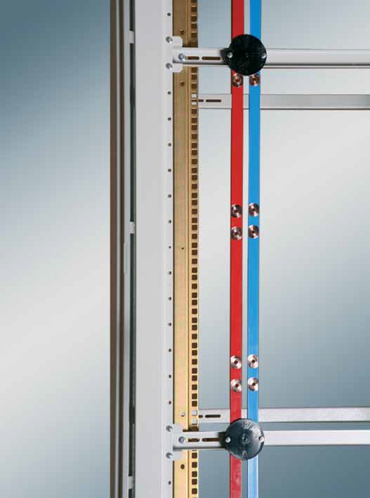 Шина имеет сечение 3х20мм, комплектуется клеммами (бегунками). Монтируется к боковым балкам шкафа (стойки). Количество клемм определяется высотой шкафа.